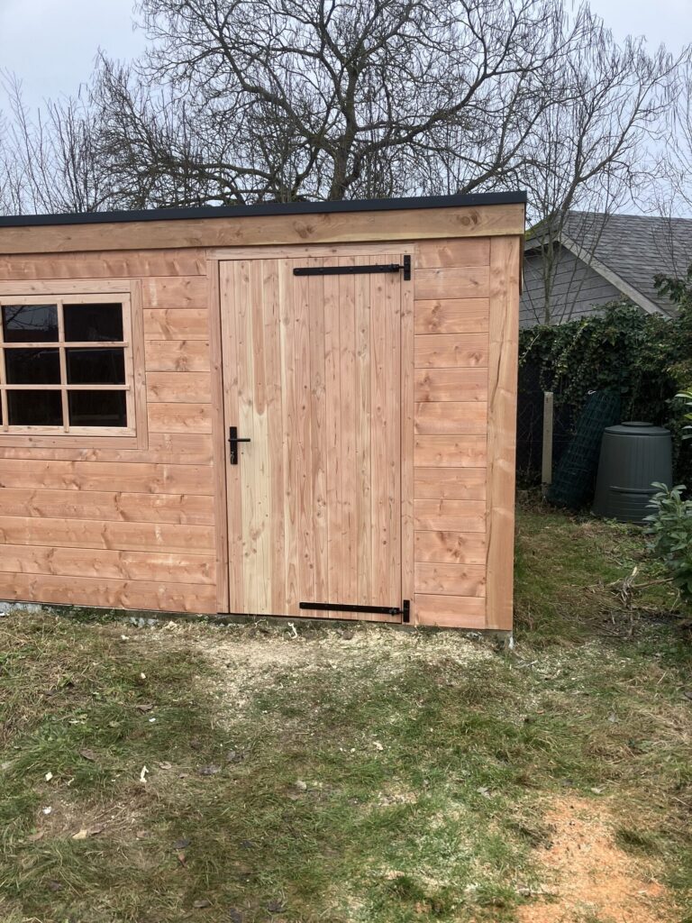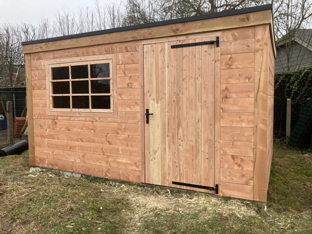 Meer op maat dan dit kan het niet zijn. Op wens van de klant maakten wij onder de bestaande carport een tuinhuis dat naadloos kon aansluiten en matchen met de bestaande bekleding.